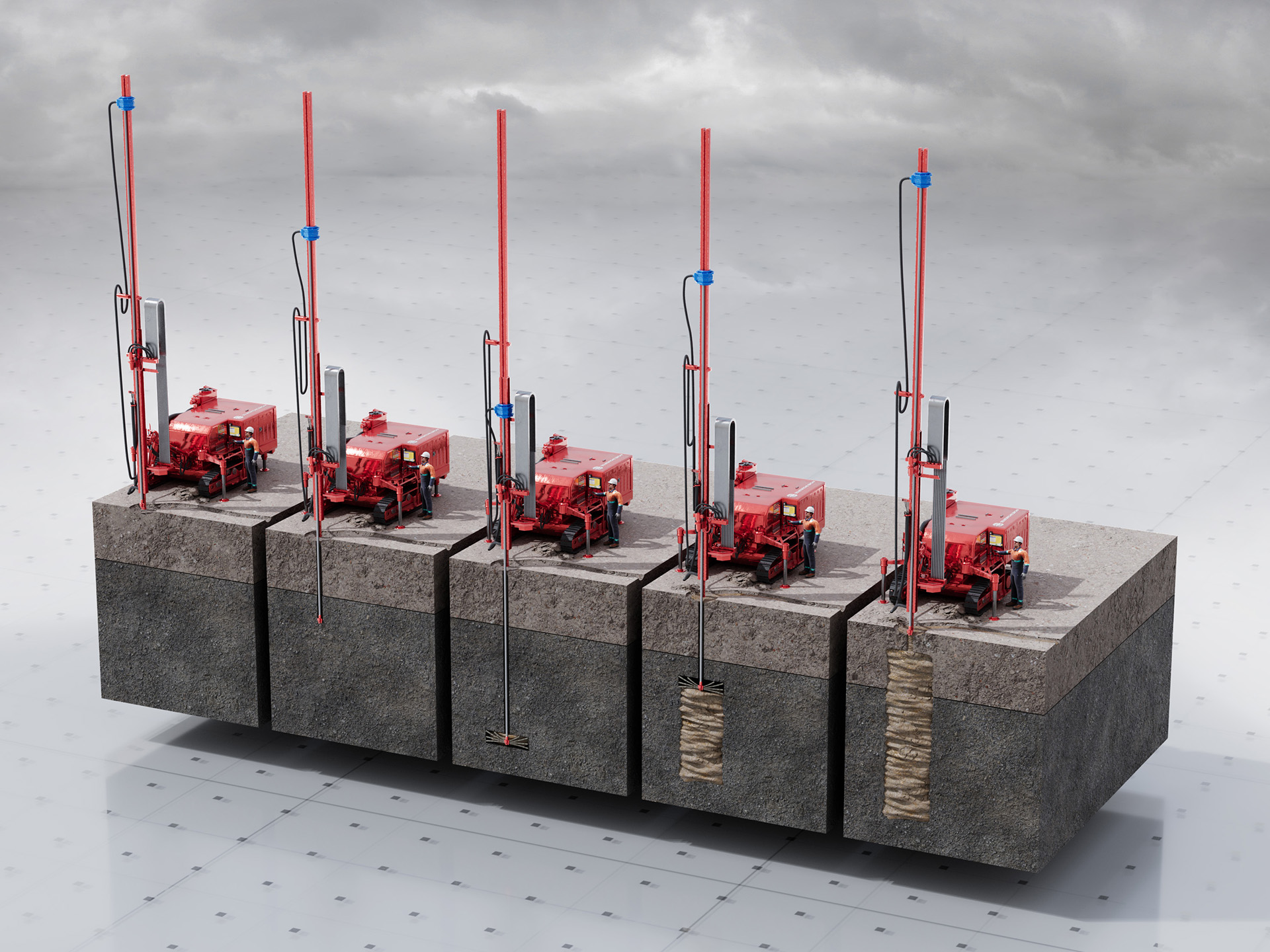 • meglévő épületek alapsík mélyítése és alapmegerősítése, a géplánc kompakt méretéből adódóan akár épületen belüli helyiségekből kivitelezve.